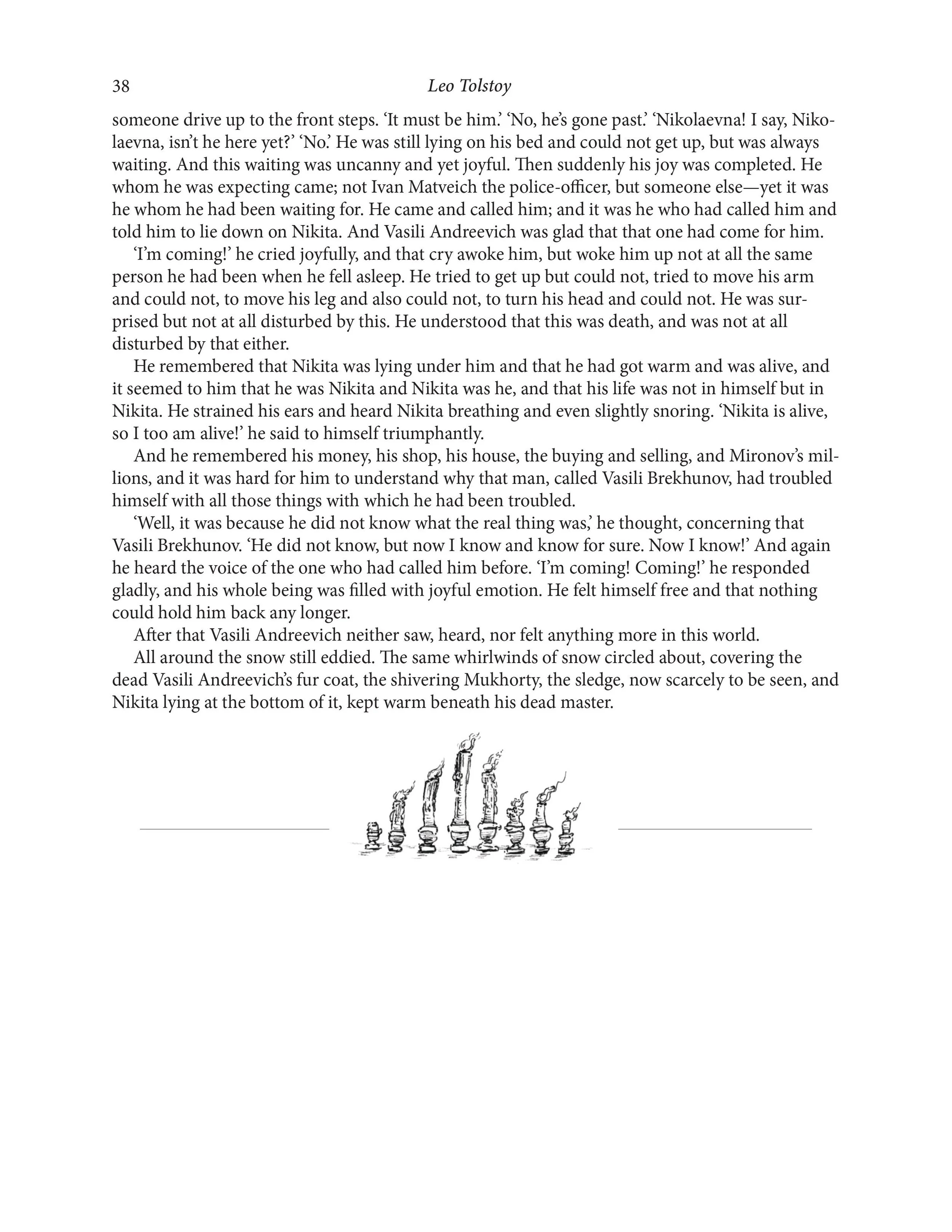 Fully illustrated storybook version of Leo Tolstoy’s Master and Man, including cover design, interior illustrations, and chapter spot illustrations.
